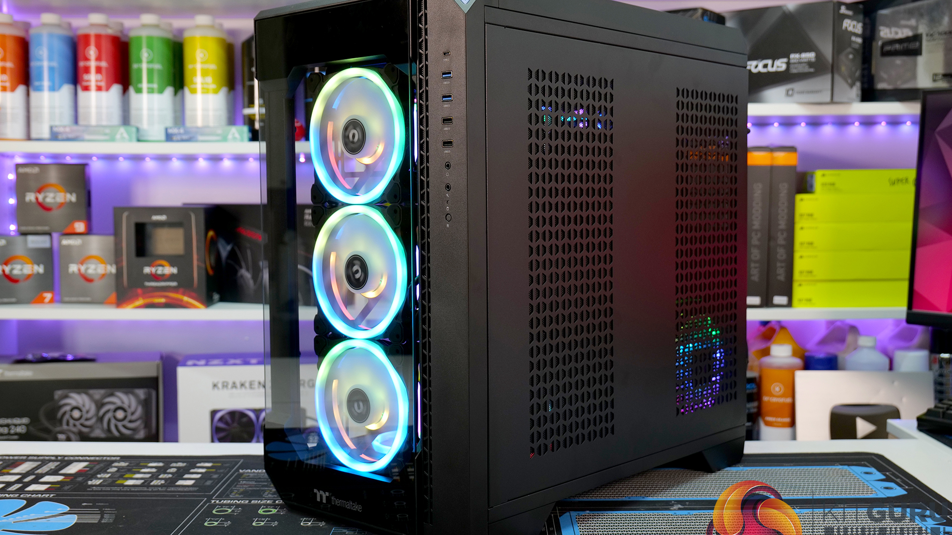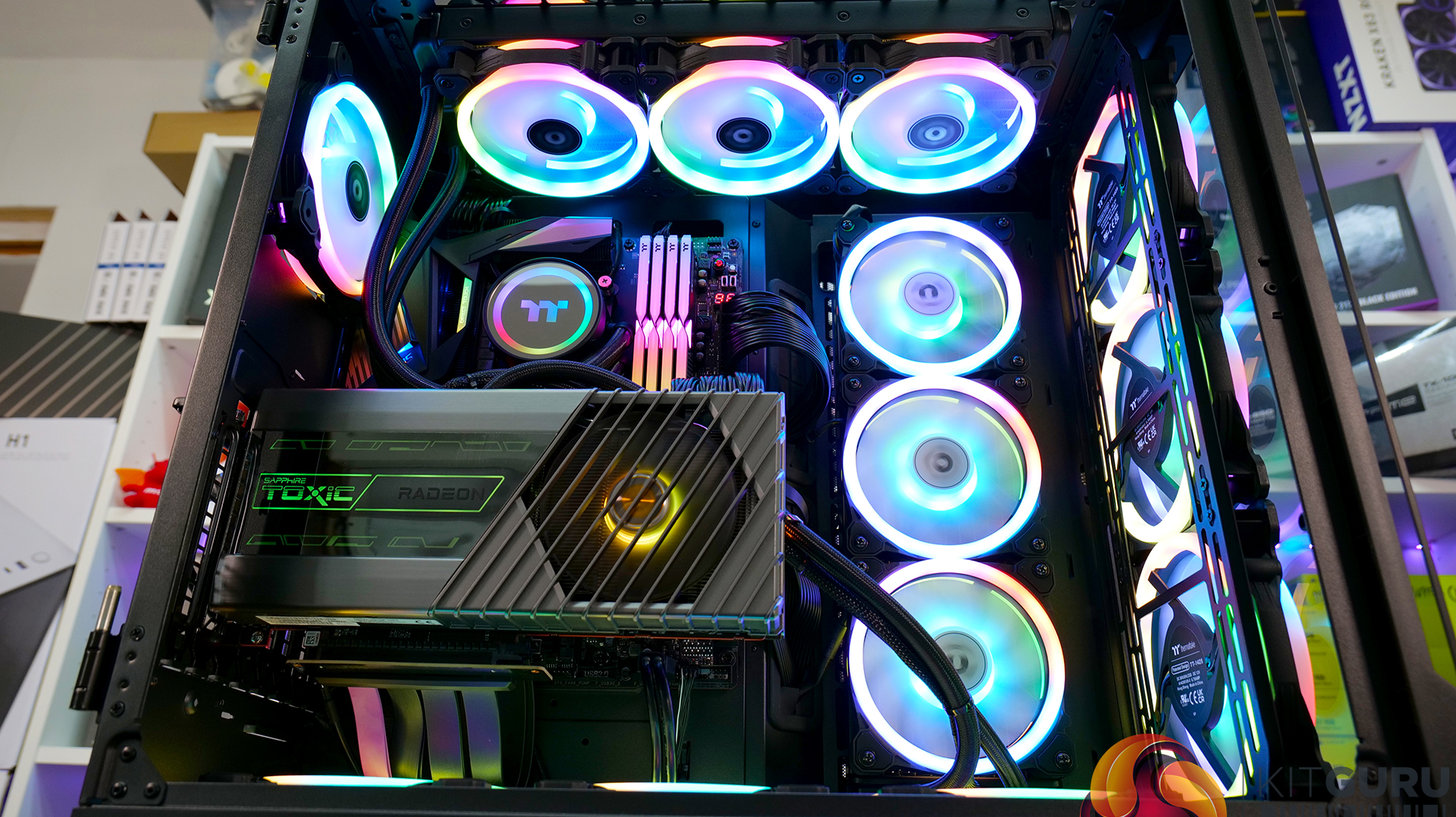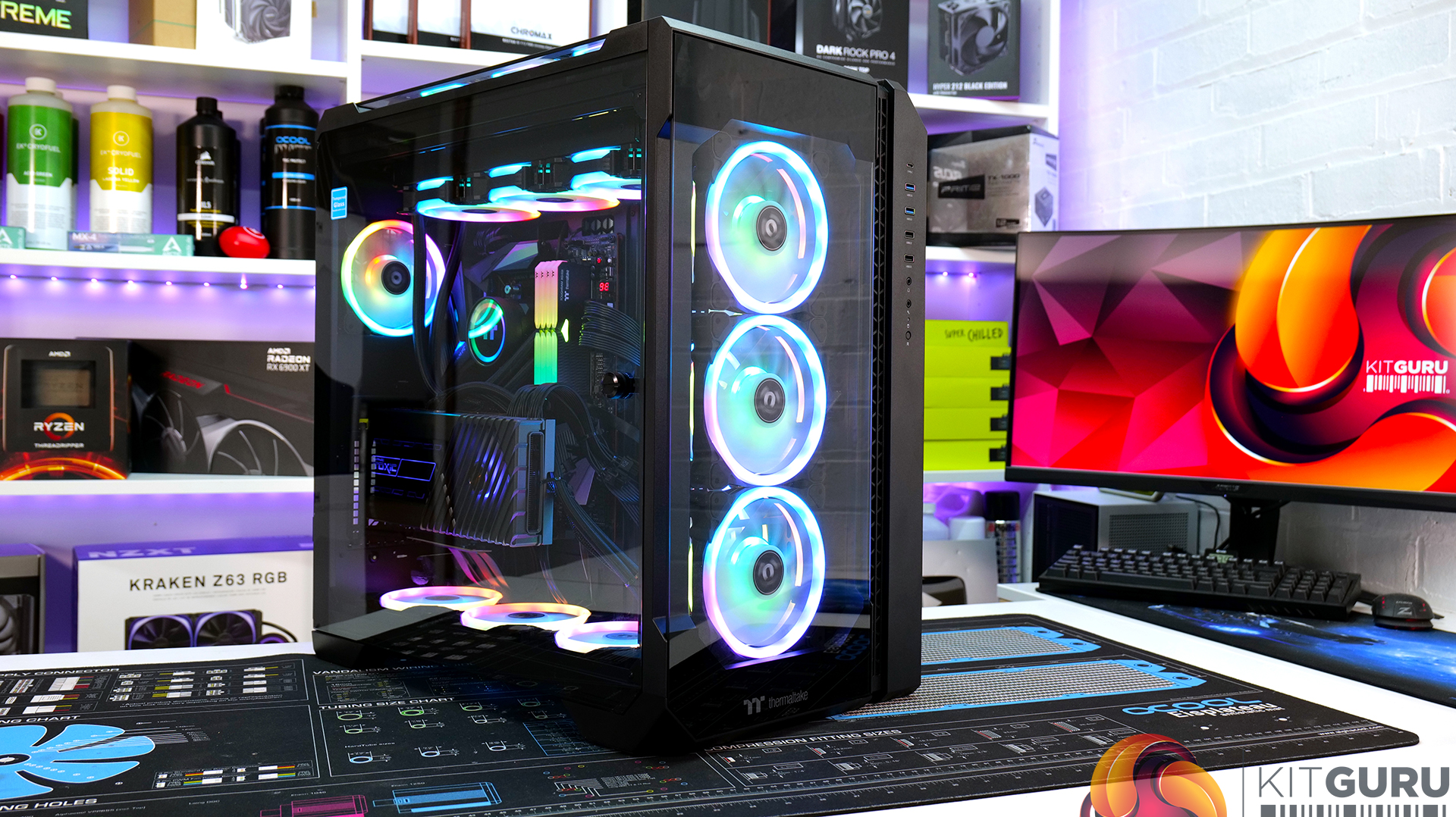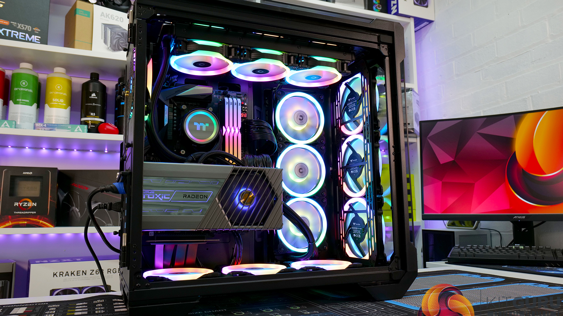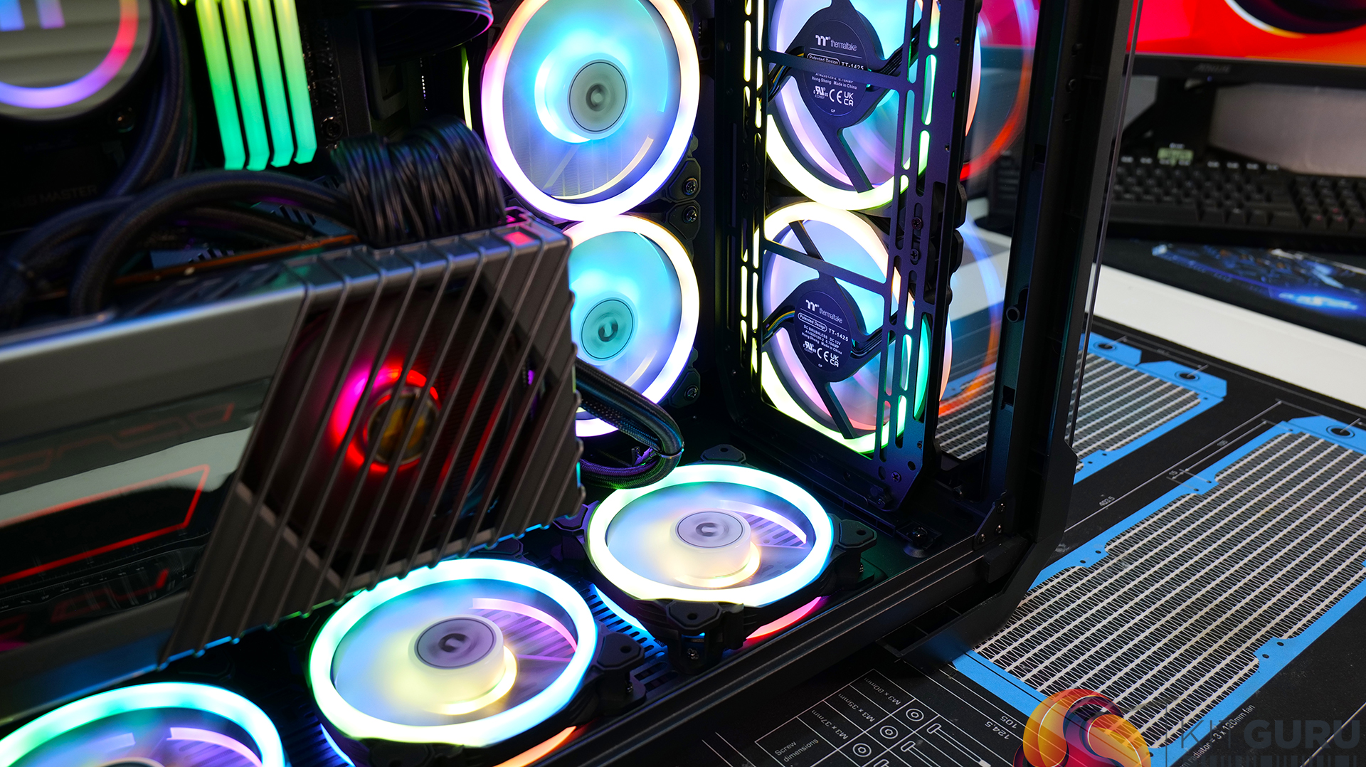 - Fans: 13 x 120mm Thermaltake SWAFAN, 3 x 140mm Thermaltake SWAFAN
