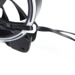 The 5V RGB LEDs in the Eiszyklon Aurora LUX PRO 2 surround the fan blades in a light diffuser ring on each side of the frame, creating a “unique illumination which looks very noble”. The RGB lighting is connected through a 3-Pin JST or a 3-pin 5V connector. Additionally, this fan comes with a sound dampening holder with foam rubber inserts to prevent noise from any vibrations.