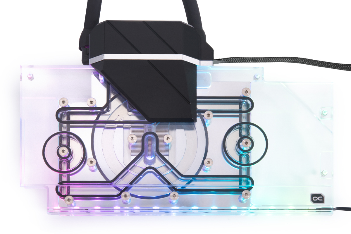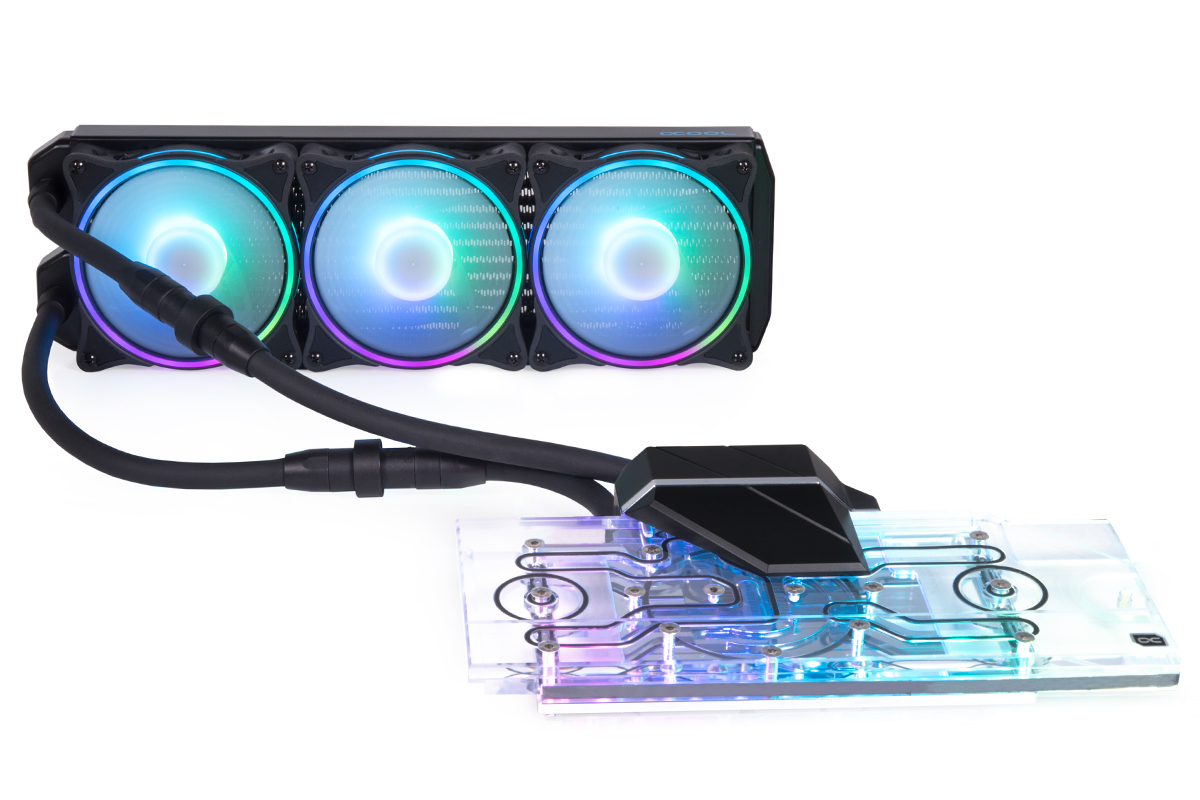 Each Eiswolf 2 AIO kit is accompanied by a 360mm NexXxoS ST30 all-copper radiator, 3x 120mm Aurora Rise fans, a full-cover Eisblock Aurora water block, a custom DC-LT 2 pump, and all the needed fittings and tubing to complete the cooling system. All these components are also available separately, except for the pump.