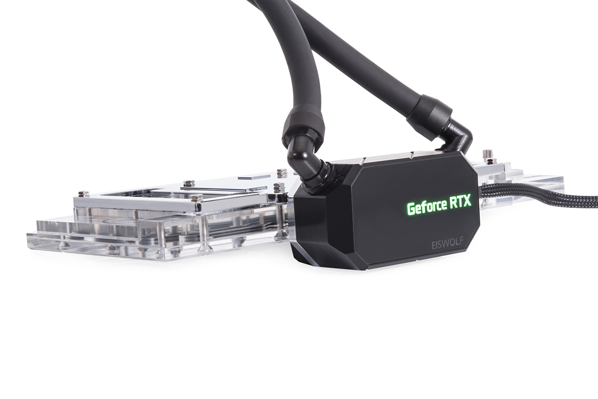 The included PWM Aurora Rise fans can reach 2500RPM, providing a 3.17mm/H₂O static pressure and up to 119.8m³/h of airflow. Using these fans paired with the 360mm NexXxoS radiator, the Eiswolf 2 offers a significant upgrade in cooling performance over its predecessor, which will definitely come in handy to cool the RTX 3080 and 3090 GPUs.