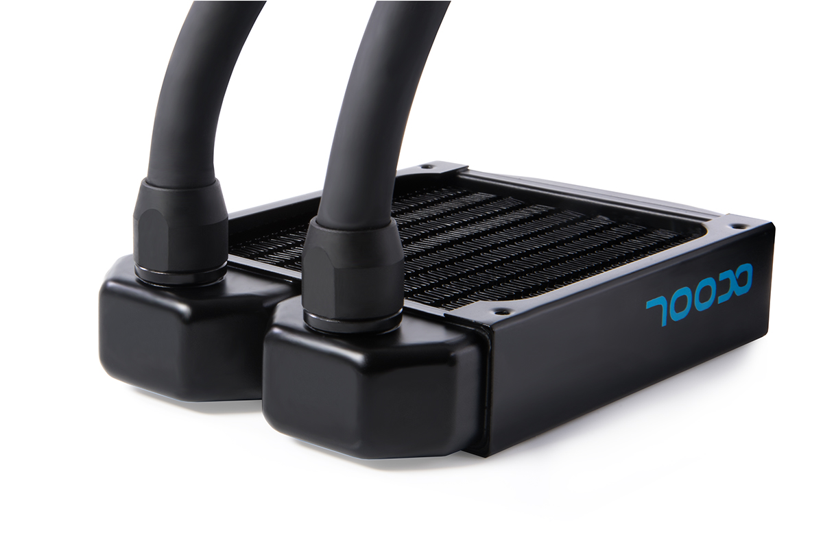 The 92mm NexXxoS series radiator is mostly made of copper, including the antechambers, cooling fins, and water channels. The cold plate is also made of copper, but it's nickel-plated. By using copper that has a heat capacity of “almost twice as high as that of aluminium”, the Eisbaer LT92 CPU cooler performs better than its aluminium equivalents. The TPV hoses and connections are part of the Enterprise Solution series.