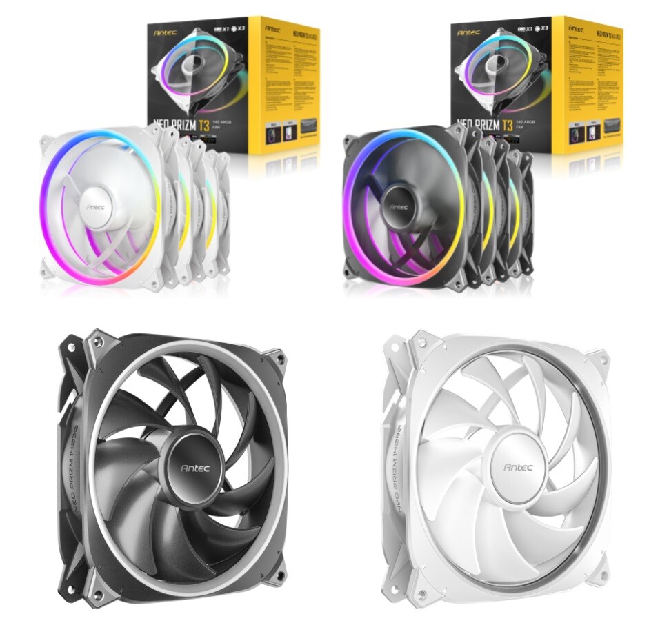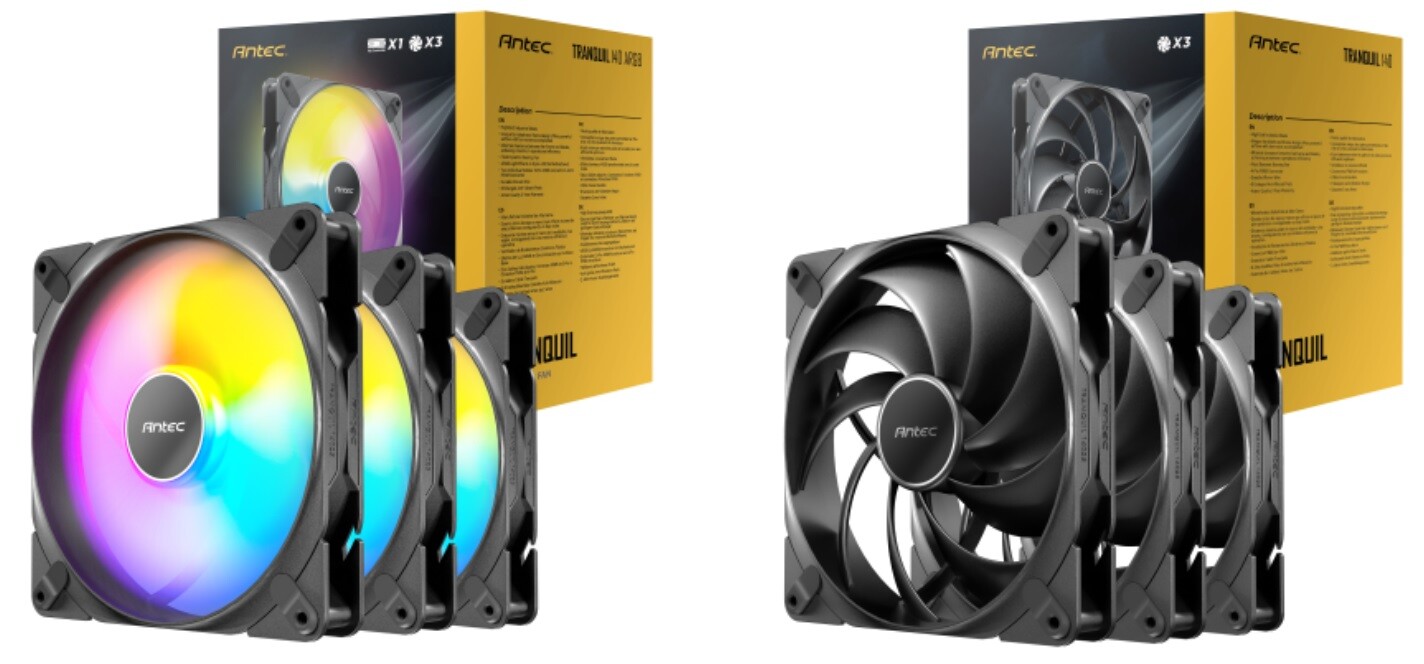 Antec is expanding its fan lineup by introducing various 120mm and 140mm fan models. These include the new Tranquil PWM fans, the Neo Prizm T3 PWM fans, the P12R PWM ARGB fans and the Nova PWM fans.