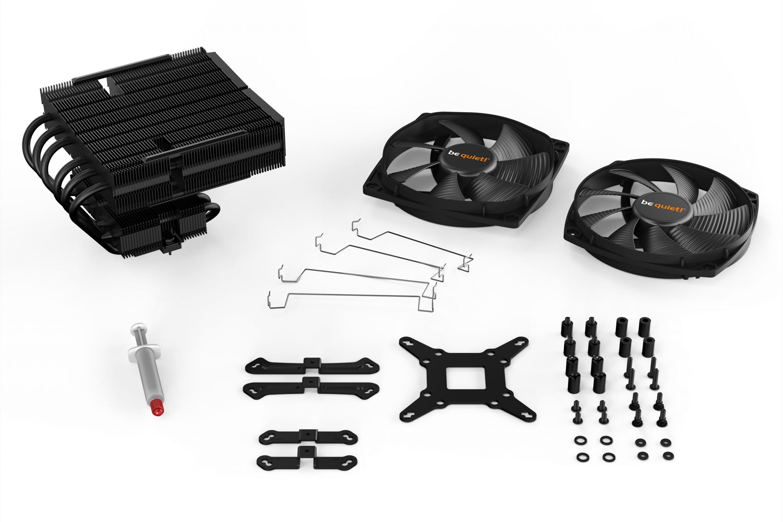 The two horizontal heatsinks are connected by six 6mm black heat pipes and pack two black Silent Wings 3 135 mm fans. Both heatsinks have anti-vibration rubber pads and a black coating with ceramic particles, but the bigger one has a brushed aluminium top cover, offering a sleek look to your build.