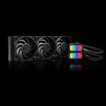 The Silent Loop 3's cooling block is visually striking and functionally efficient. With a fin area of 1800 mm², up to twice as large as previous be quiet! AIOs in this class, it provides improved heat dissipation. This large fin area is achieved through a screwless connection for the heat plate, ensuring superior heat transfer and comprehensive coverage of CPU hotspots. The Silent Loop 3 models can comfortably cool any current consumer CPU, with the 360mm and 420mm versions even capable of handling Threadripper processors (mounting kit included). The all-black cooling block design, accented with ARGB LEDs, should be a good match for the majority of builds.