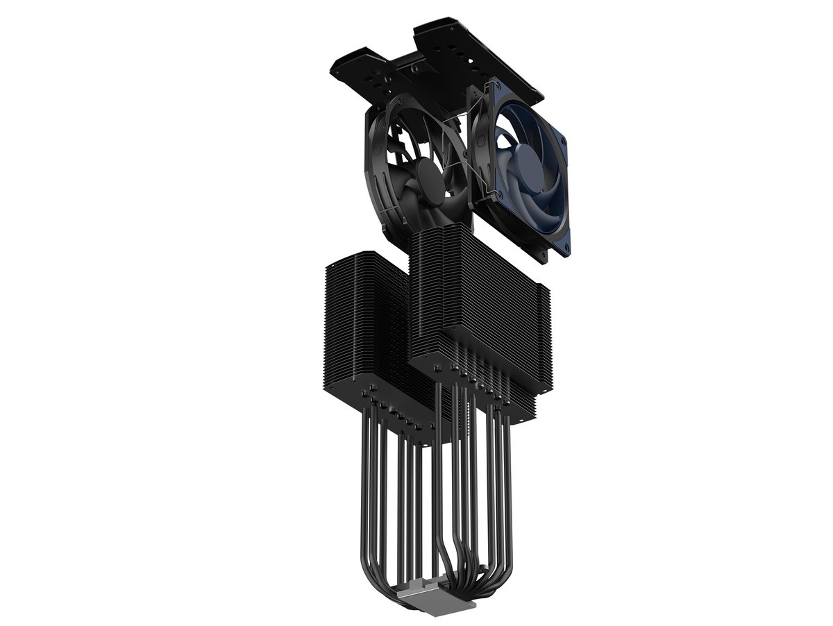 The MA824 Stealth boasts a re-engineered dual tower design, featuring optimised fin thicknesses and gaps to maximise surface area. To transfer the heat from the CPU, the cooler has a copper base with a nickel-plated finish. The eight heat pipes connecting the copper base to the heatsink are engineered with a unique composition of different powder sizes. Preliminary tests conducted on similar models, such as the MasterAir 412 Stratos, have demonstrated remarkable performance improvements of up to 30%.