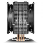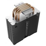 Featuring 4x 6mm copper heat pipes “specifically positioned” to dissipate the heat generated by the CPU, this cooler uses Core Touch Base technology to “dissipate heat more efficiently”. The heatsink has a black cover mounted on top of it, designed to sit flush next to the black frames of the included fans.