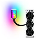 The Thicc Q80 Trio also features a 5″ IPS display with a 42-pixel qRGB array mounted above the cold plate on a double-hinged floating spout. The Thicc Q80 can also serve as a Nexus Link Primary Node, allowing it to connect up to 18 devices on a single channel and 36 devices over both available channels. Available in both black and white, the Thicc Q80 offers complete customisation via the Hyte Nexus software.