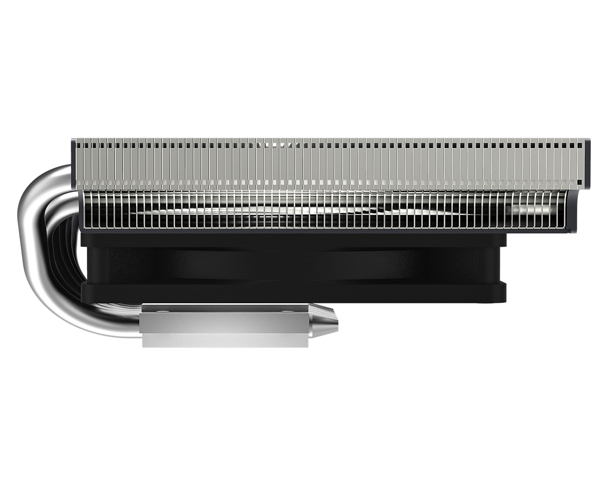 Unlike most low-profile CPU coolers, the fan is positioned below the heatsink, pushing the air through the fins from the bottom to the top. The 92mm PWM fan uses hydraulic bearing and ID-Cooling claims it is capable of generating 44.3CFM of airflow thanks to its rotational speed ranging between 600 and 2500RPM. The rated noise varies from 14dB to 33dB and the maximum static pressure is 3.24mmAq.