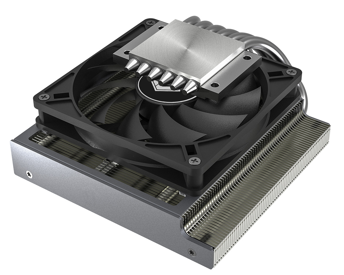 The low-profile design of the IS-47K allows users to install virtually any high-profile memory on an ITX motherboard. ID-Cooling claims the ‘high-density heatsink' is enveloped by a ‘metal frosted frame' and cooled by a slimline 92mm PWM fan. The polished copper nickel-plated base transfers heat from the CPU to the heatsink via 6x 6mm nickel-plated heat pipes.