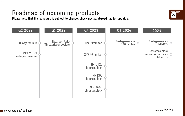 Noctua has updated its product roadmap for the rest of 2023, along with a sneak peek into some hardware scheduled for release in early 2024 and beyond. With Computex 2023 starting at the end of the month, Noctua is likely updating its release schedule in preparation for the event.