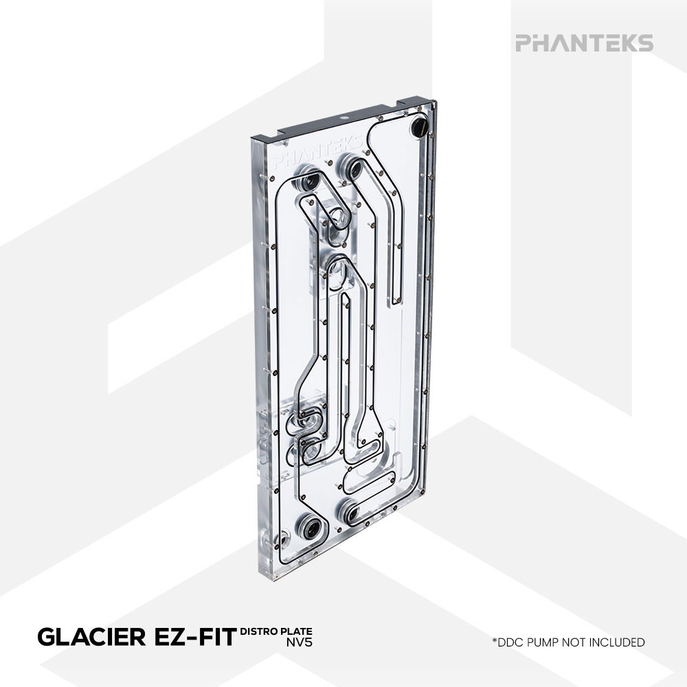 Headlining the EZ-Fit water cooling series expansion are the Glacier EZ-Fit distro plates, custom-designed for a perfect fit inside Phanteks' popular NV5 and NV7 chassis. These acrylic plates are designed to be the heart of a clean single/dual-radiator loop, with a mount for a DDC pump. To customise its looks, Phanteks added ARGB lighting that you can modify.
