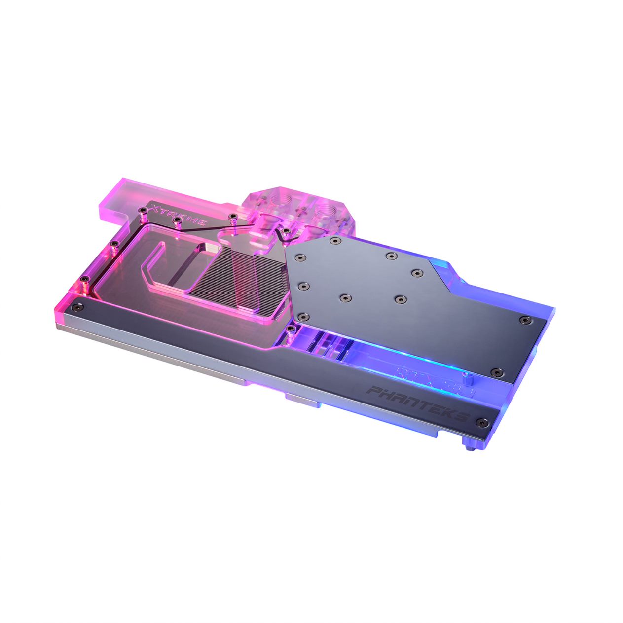 Designed to cover the whole PCB, the water block transfers the heat from the GPU through a 6mm copper base, which is then transferred to a big surface area with reduced flow resistance. The water block has D-RGB lighting that can be synchronised with other Phanteks’ D-RGB accessories or third-party components.