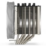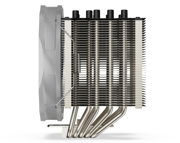 The Pulsar HP ARGB PWM fan RPM range is 250-1400RPM, and the MTBF is 50000 hours. The nickel plated asymmetrical heatsink is connected to the base through 5x 6mm heat pipes, with “direct CPU contact”. The heatsink's asymmetrical shape was designed to avoid the any interference from a user's RAM modules.