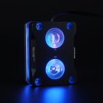 The updated cooling channel slot width on the copper base plate of the Intel Mycro Direct-Die Pro RGB V1 accommodates 43% more cooling fins compared to its predecessor. Additionally, a newly designed jet plate minimises flow resistance, enabling the Pro version to achieve a greater flow rate in L/m at the same pump speed as the original model. This enhanced flow capability allows for adjusting the pump to reduce noise or disperse more waste heat while maintaining the same noise level.
