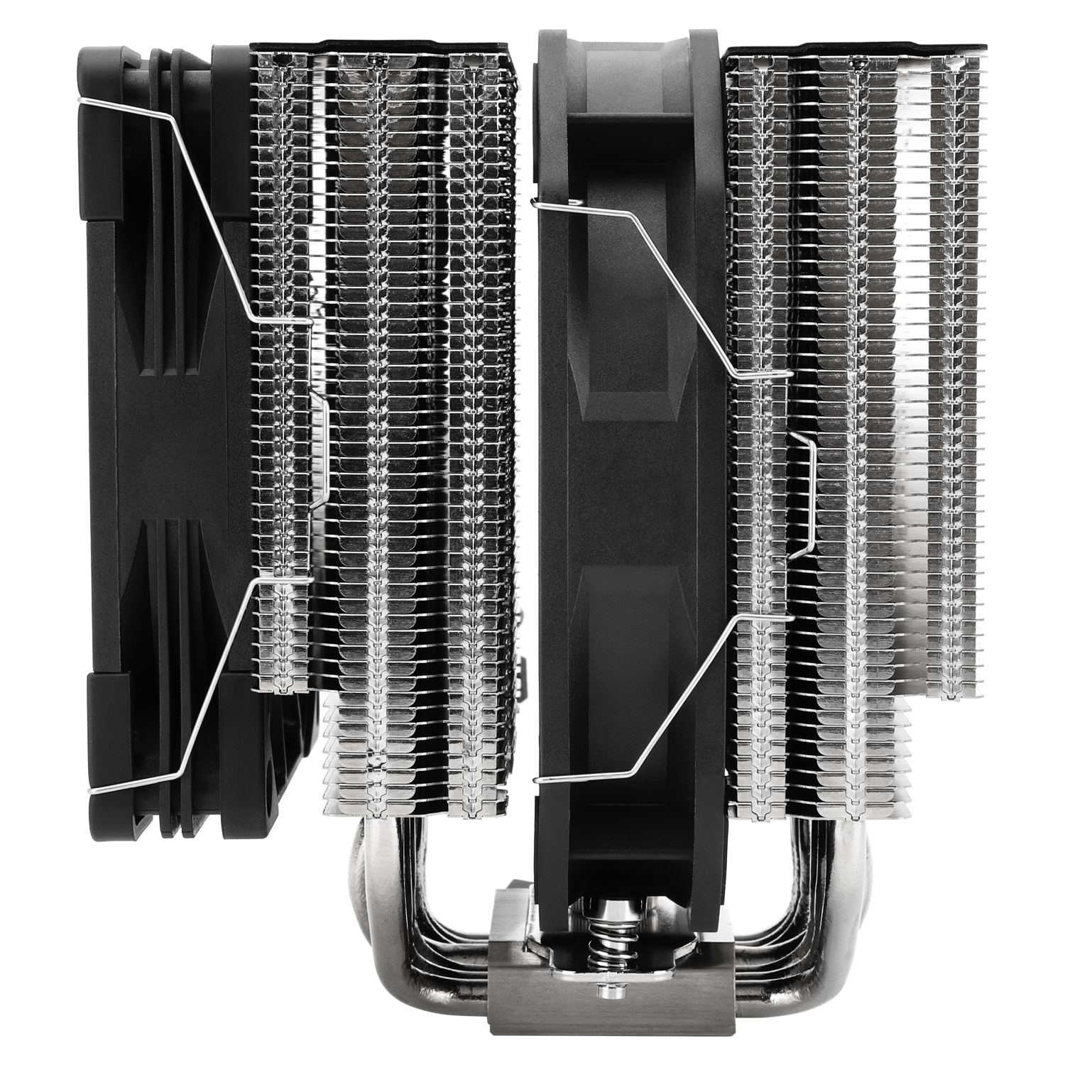 Measuring 140x109x158 mm (LxWxH), the Frost Vortex 140 SE is a CPU cooler suitable for typical ATX configurations. With an odd heatpipe configuration, it features 6x 6mm heatpipes and an 8mm heatpipe at the centre. These heat pipes are linked to a dual-tower heatsink on one end and a C1100 pure copper nickel-plated base on the other.