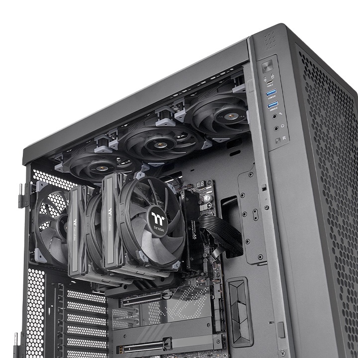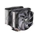 Designed for the latest Intel and AMD CPUs, the Thermaltake ToughAir 710 comes in a dual-tower design with two 140mm fans in a push-pull configuration. With RPM ranging between 500 and 1400, these fans are rated to provide an airflow of up to 81.96 CFM and a static pressure of 1.81 mmH2O with a peak noise level of 23.9 dBA. Alternatively, you can use the low noise adapter to reduce maximum operating noise to 18.5 dBA, decreasing fan speed to 300-1,100 RPM, limiting maximum airflow to 65.03 CFM and static pressure to 1.3 mmH2O. The fans' lifetime is estimated at 40,000 hours.