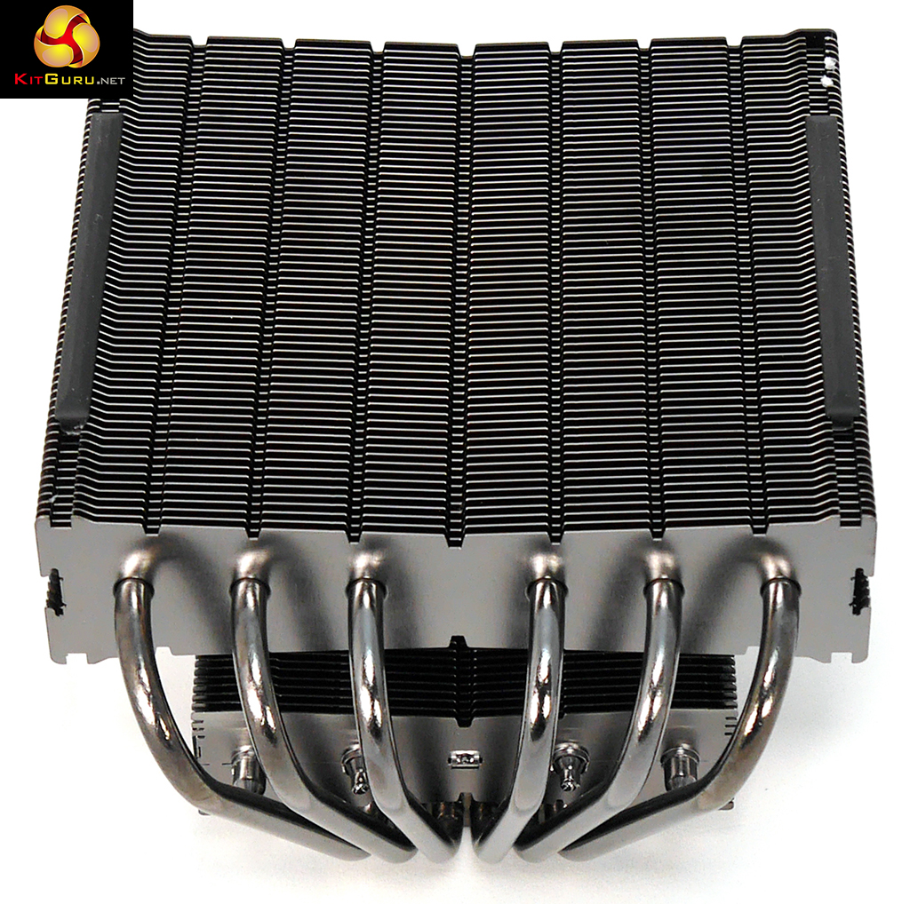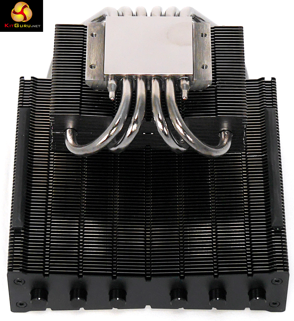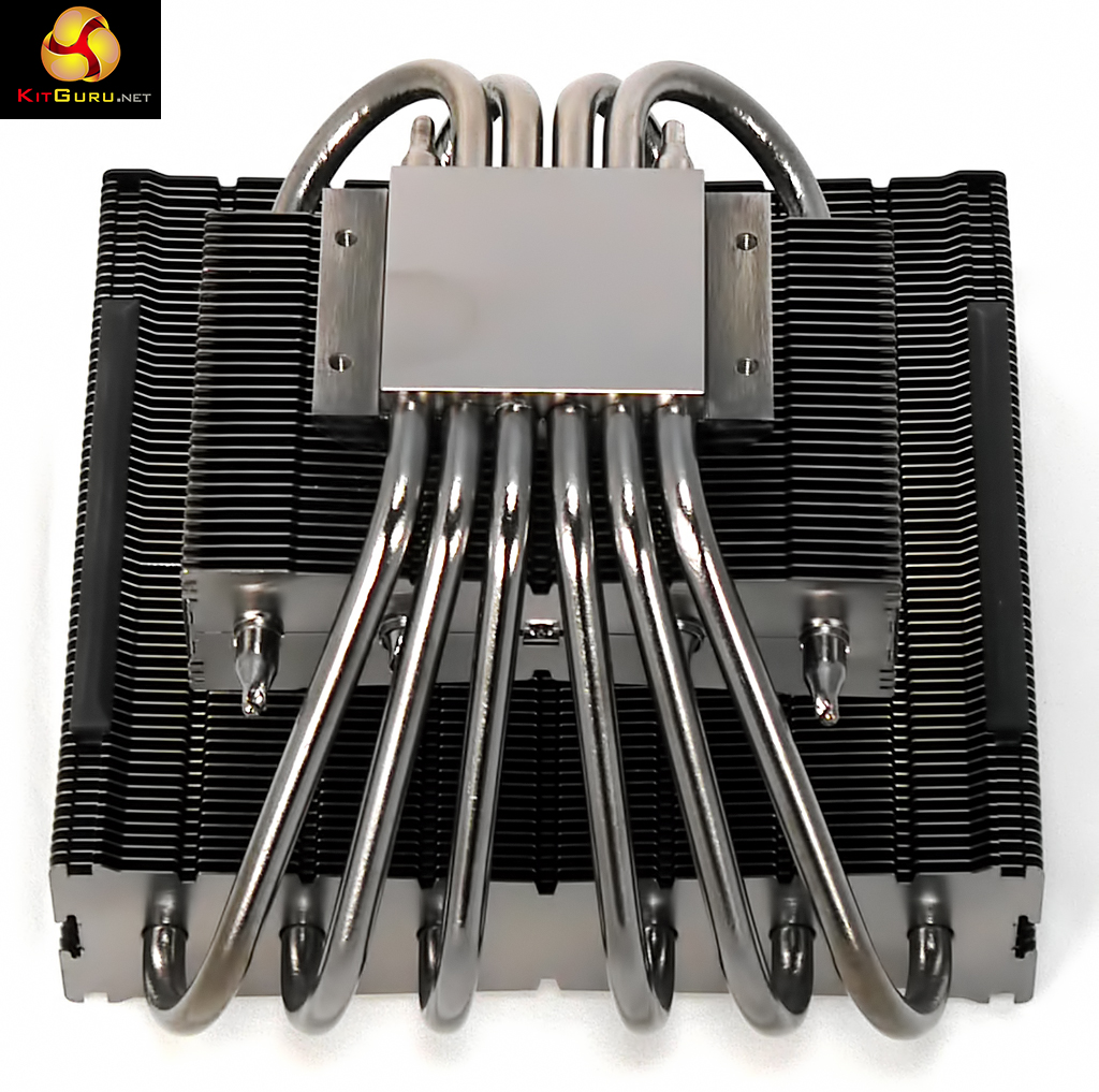 The layout of Dark Rock TF is slightly unusual, as you can see in the photos and video. The nickel plated heat sink is connected to two aluminium radiators with six 6mm heatpipes going to the large upper radiator and four heat pipes connected to the small lower radiator. You can see this arrangement clearly in our photos and no doubt you will also see there is a mark on the nickel plating heat sink, however the surface of the metal is smooth and flat so this appears to be a cosmetic issue rather than a fundamental problem.