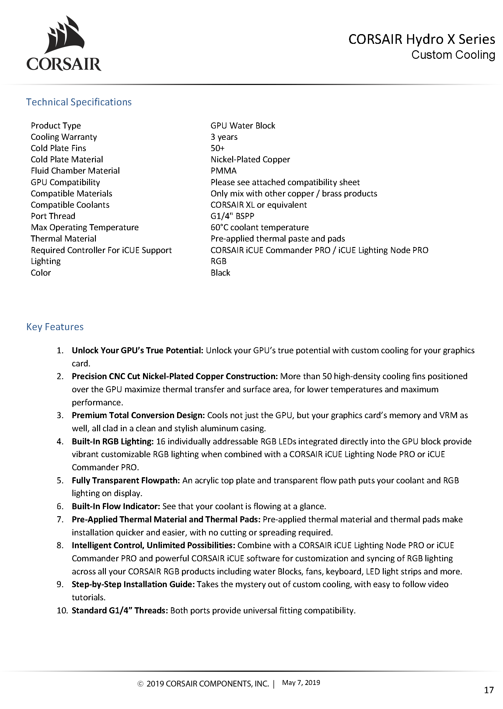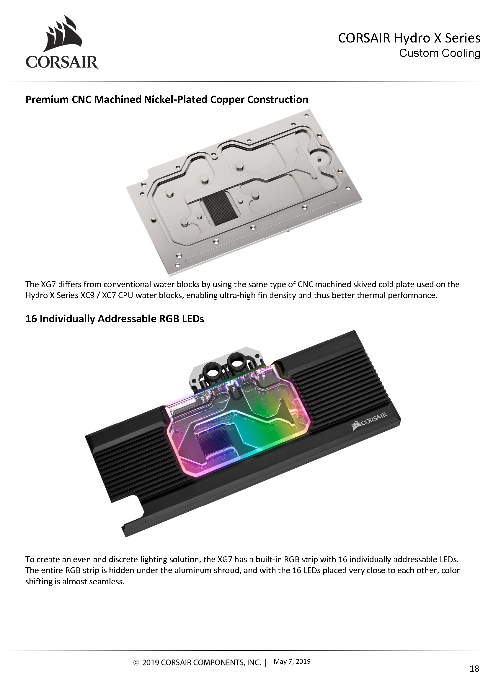 Corsair supplied us with an XG7 graphics block for RTX 2080 Founders Edition. This is a copper block that is nickel plated and comes with an aluminium cover and backplate. Corsair is promoting the fact the block includes a flow indicator, which is a novel feature.
