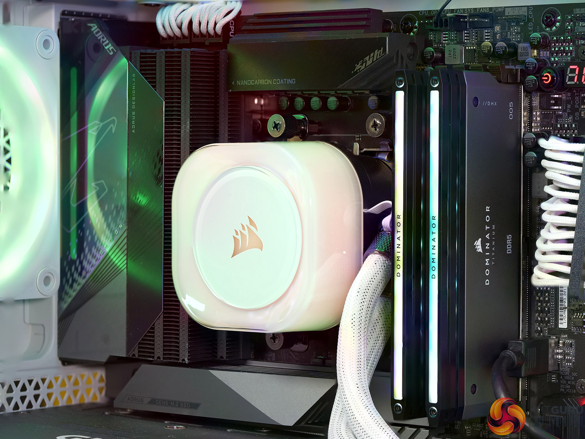 We are showcasing a 64GB set of DDR5 6000 EXPO which came in a Corsair Dominator Titanium First Edition kit. This means we are able to show you both the default RGB lighting and also alternative GT Fin Style Tops that promise to maximise cooling. We will be working on a full review of Corsair Dominator Titanium very soon.