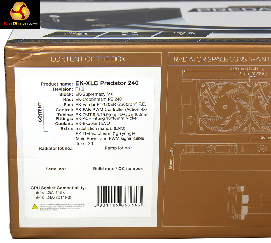 The EKWB EK-XLC Predator 240 All In One Watercooler is damn impressive. It looks gorgeous, feels like quality engineering and is easy to install in your PC. Admittedly you might have to swap over the CPU back plate or change the LGA2011 mounting screws but that shouldn't pose a problem.