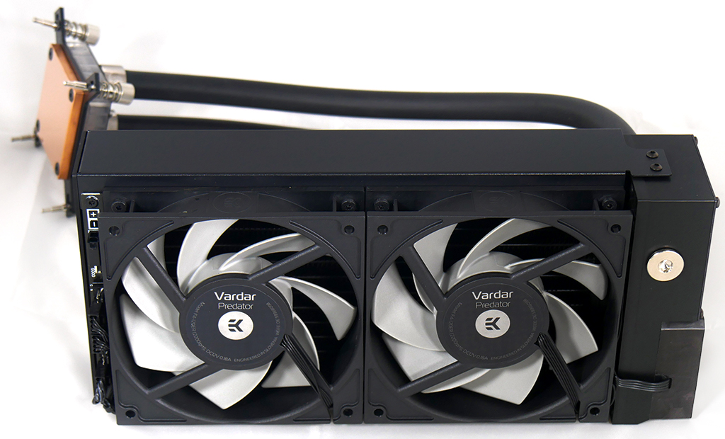 EKWB has worked hard to tidy up the details of the Predator cooler. The fans and pump connect to a PWM hub that is integrated in the radiator assembly, leaving one fan connector available for a cooling upgrade.