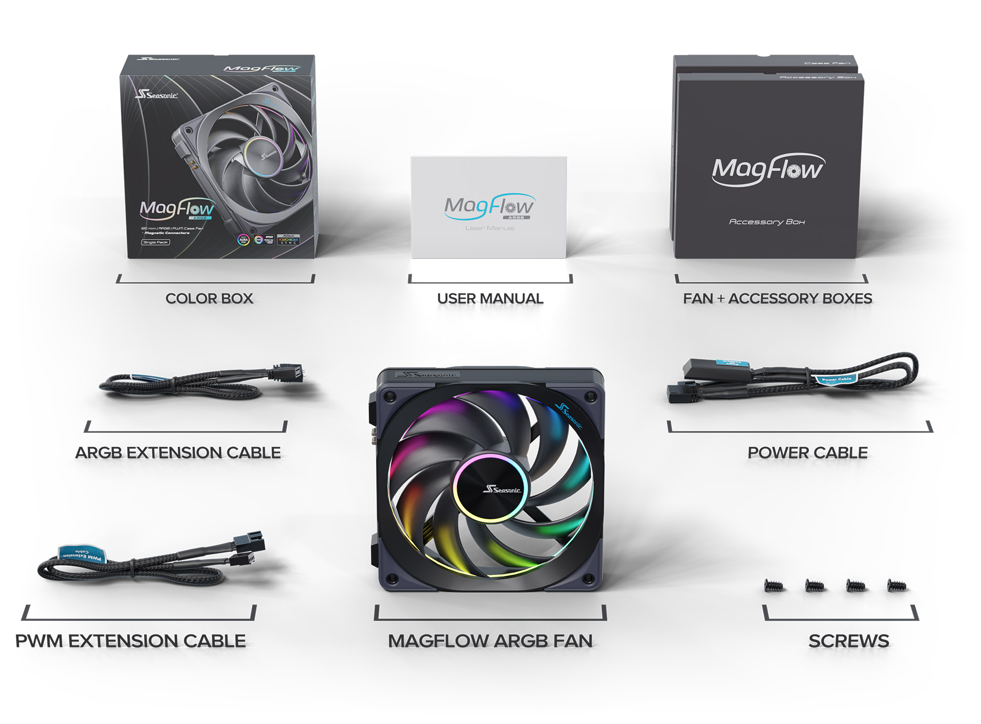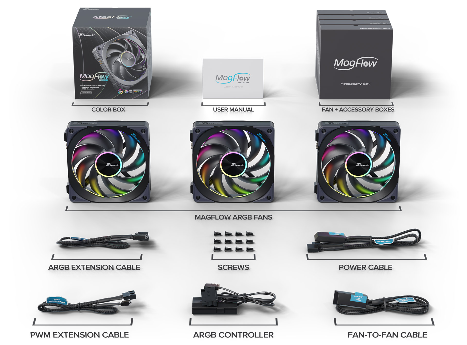 - Case fans: Seasonic MagFlow ARGB