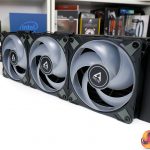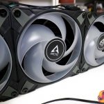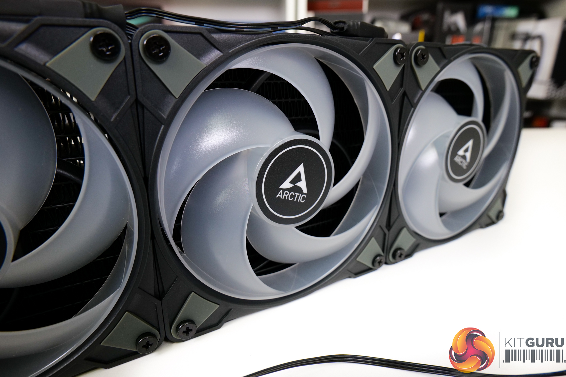 Three of Arctic’s 120mm P12 PWM A-RGB fans are used for cooling duties. These Fluid Dynamic Bearing units are rated for a 200-1800 RPM speed range via the PWM control method. That low-speed capability all the way down to 200 RPM is particularly impressive, especially if your system’s idling or low load temperatures allow for such operation.