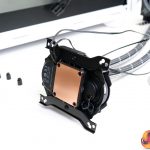 Shifting heat away from the CPU is the copper cold plate with its micro-skived fins. This square profile slab of copper looks to be appropriately sized to offer solid coverage for current Intel and AMD mainstream processors, as well as LGA 2066 that this cooler supports. Threadripper compatibility is not provided.