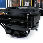 One thing to watch out for with the cooler’s design is the angle of the heatpipes. Particularly with the curvature of the six copper pieces entering the top fin array, interference with nearby components is a possibility. Though this is only likely an issue in really confined cases or with ludicrously sized VRM heatsinks (which some mITX motherboards do sport).