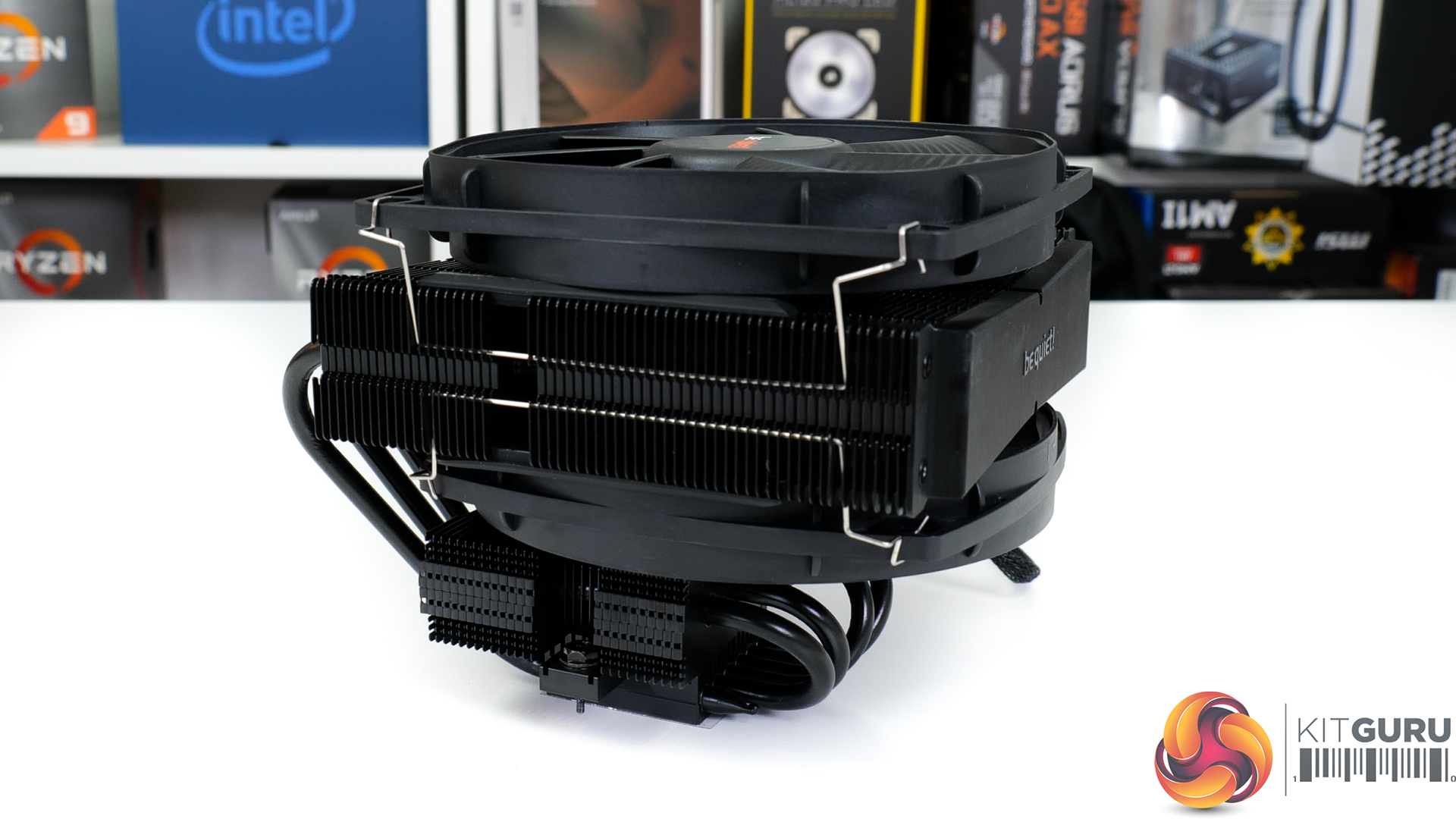 Two individual aluminium fin arrays form the Dark Rock TF 2 heatsink. The larger of these two heatsinks sits above the smaller section that is positioned just above the cooler’s base structure. Effectively, this means that hot coolant air exiting the top heatsink will also be forced through the smaller, lower heatsink thus limiting its cooling abilities.