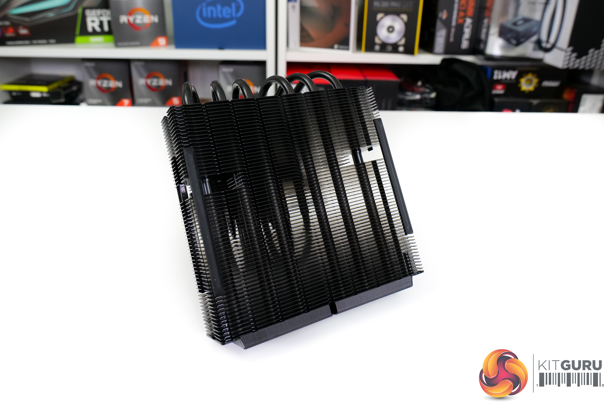 Running through the dual aluminium fin arrays are six 6mm copper heatpipes. These heatpipes emanate from the CNC machined, nickel-plated copper base.