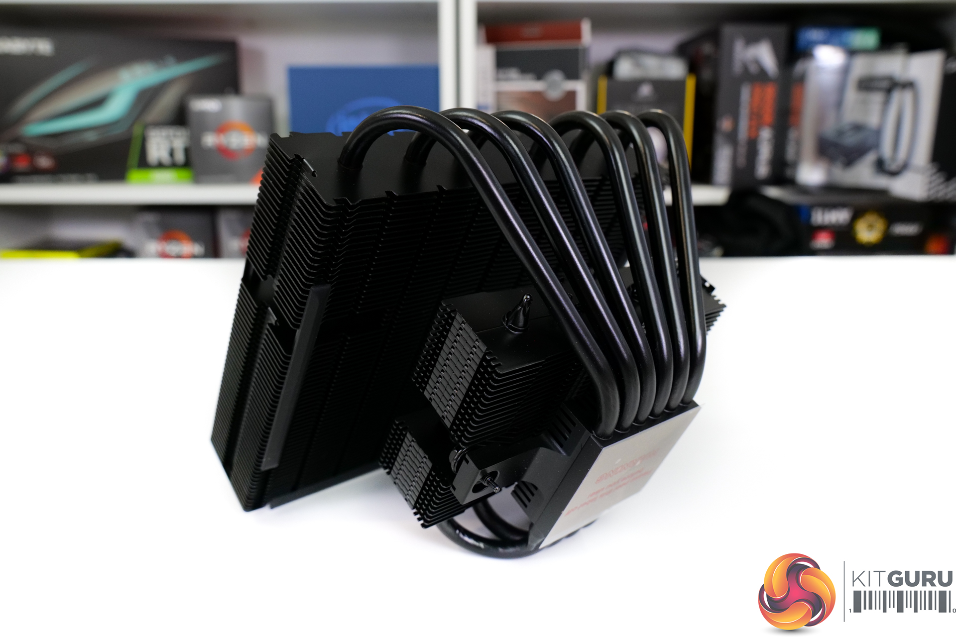 Total weight of the CPU cooler is 945g, which is not particularly heavy for a high-end, dual-fan unit.