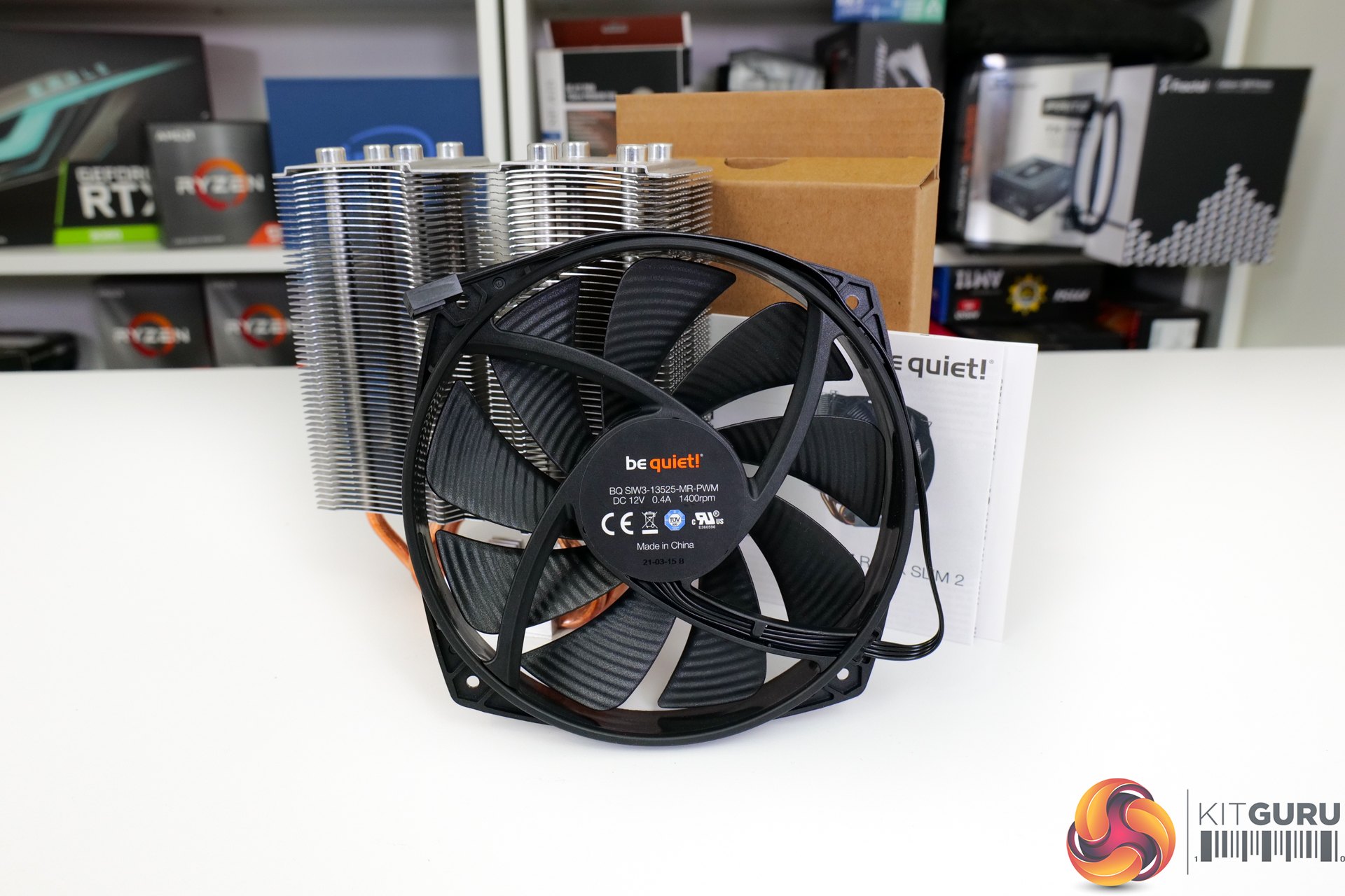 The heatsink is symmetrical in form down an X and Y-axis centreline. That means that the fattened sections of the fin array are found on either side of the centre point. Somewhat surprisingly, though, there is no offset design for additional RAM clearance. be quiet! seems to think that the Shadow Rock Slim 2’s design is narrow enough already to make RAM interference no concern.