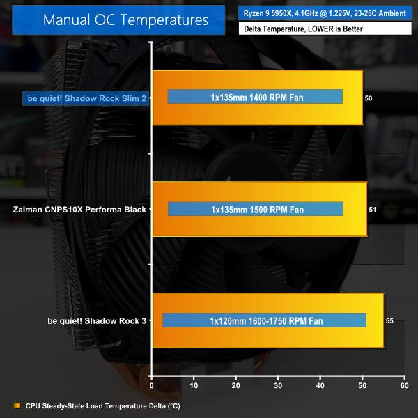 Moving on to our new 4.1GHz fixed frequency overclocked test, as we have only recently added the new 4.1GHz mid-range cooler test to our suite, we have very limited comparison data at the moment. Do check back on future reviews, as we have quite a few mid-range CPU coolers for test over the coming weeks, so the charts will start to show significantly more comparison data.