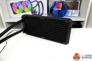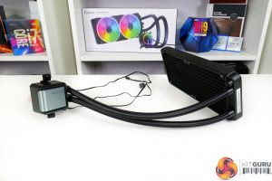 The fin density is what we would describe as average compared to alternative 240mm AIOs. 400mm length tubes with the usual premium sleeving materials are used for aesthetics and quality emphasis.