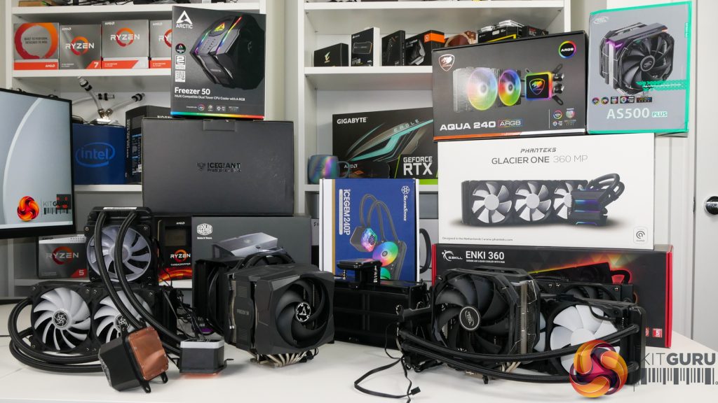 We have a variety of CPU coolers on test. This selection includes mid-sized and dual-tower air coolers, 240mm and 360mm AIOs, and the unique IceGiant ProSiphon Elite with its thermosiphon technology. Let’s take a closer look at the individual coolers.
