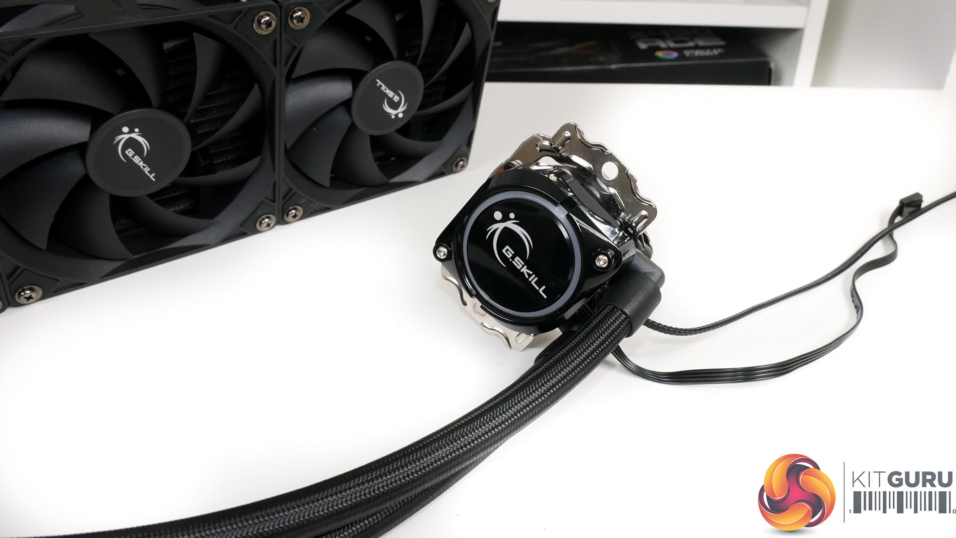 None of the fans feature any form of RGB lighting – that is reserved for the pump-block unit. A simple, braided 3-pin 5V RGB header allows for straightforward ARGB lighting control through motherboard software. Disappointingly, G.SKILL does not include any form of fan splitter. This is annoying for a triple-fan AIO cooler that needs 4 headers including the pump.