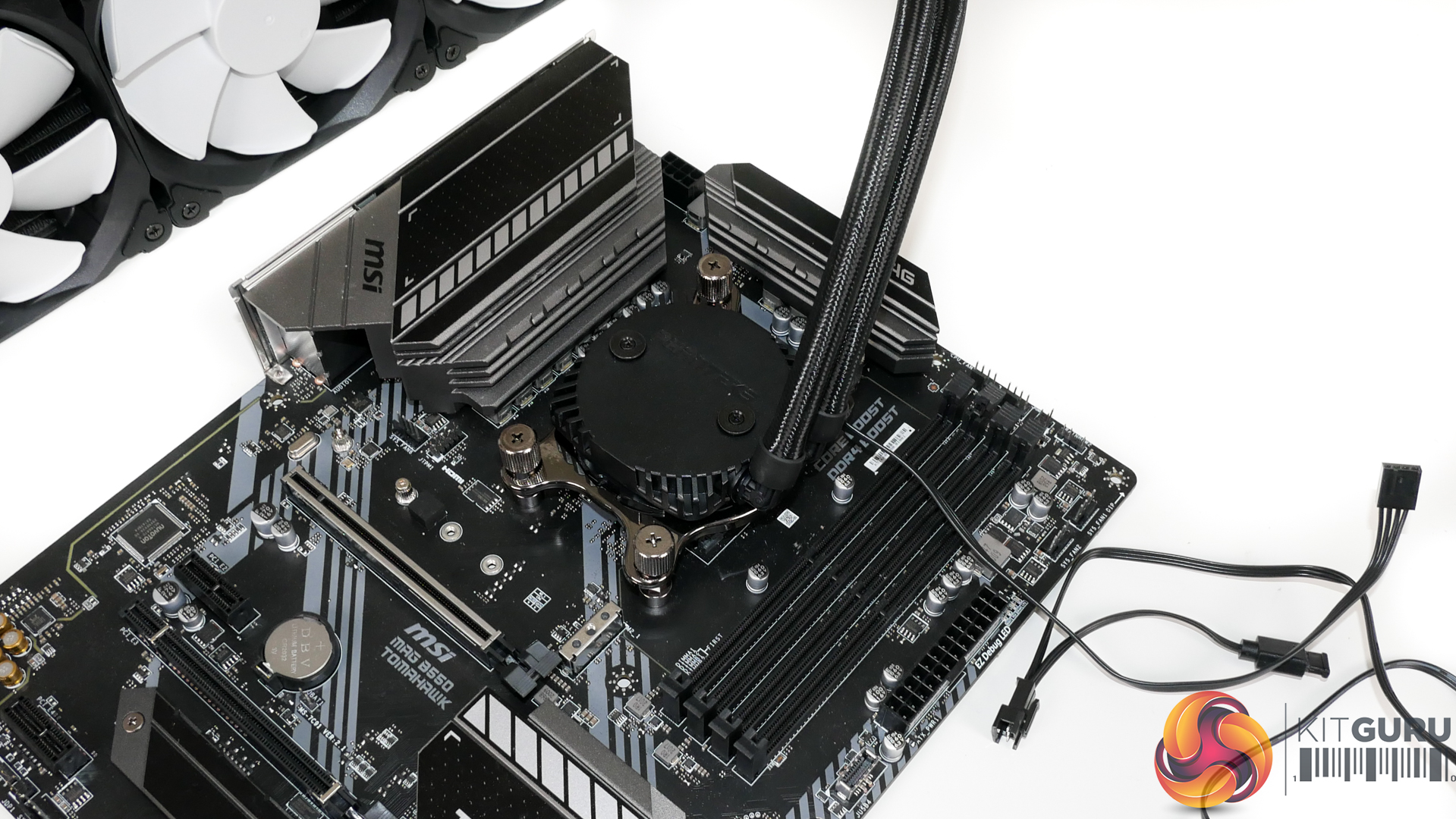 Installation is as straightforward as we would expect from an Asetek AIO. Four screw pillars are connected to the default AM4 backplate. The Asetek design pump-block unit is then sat over these pillars and hand-tightened using female threaded screws. The magnetic pump cover can then be snapped into position and the cables connected. Tubing flexibility is superb and this gives options with regards to mounting directions.