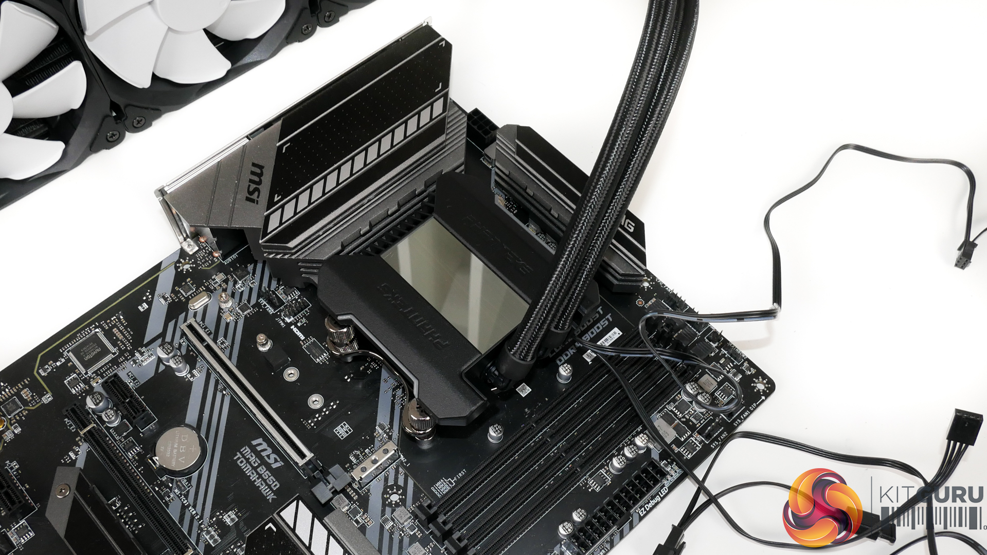 Thankfully, the side-mounted tubes just missed the VRM heatsink on both our Gigabyte and MSI B550 motherboards.