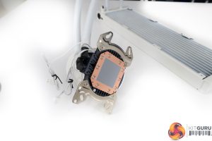 DeepCool’s in-house pump/coldplate design helps the vendor avoid any patent issues with Asetek or the likes. The copper cold plate is a sizable area thus making it sufficient for large heatspreader coverage on Ryzen or Intel HEDT.