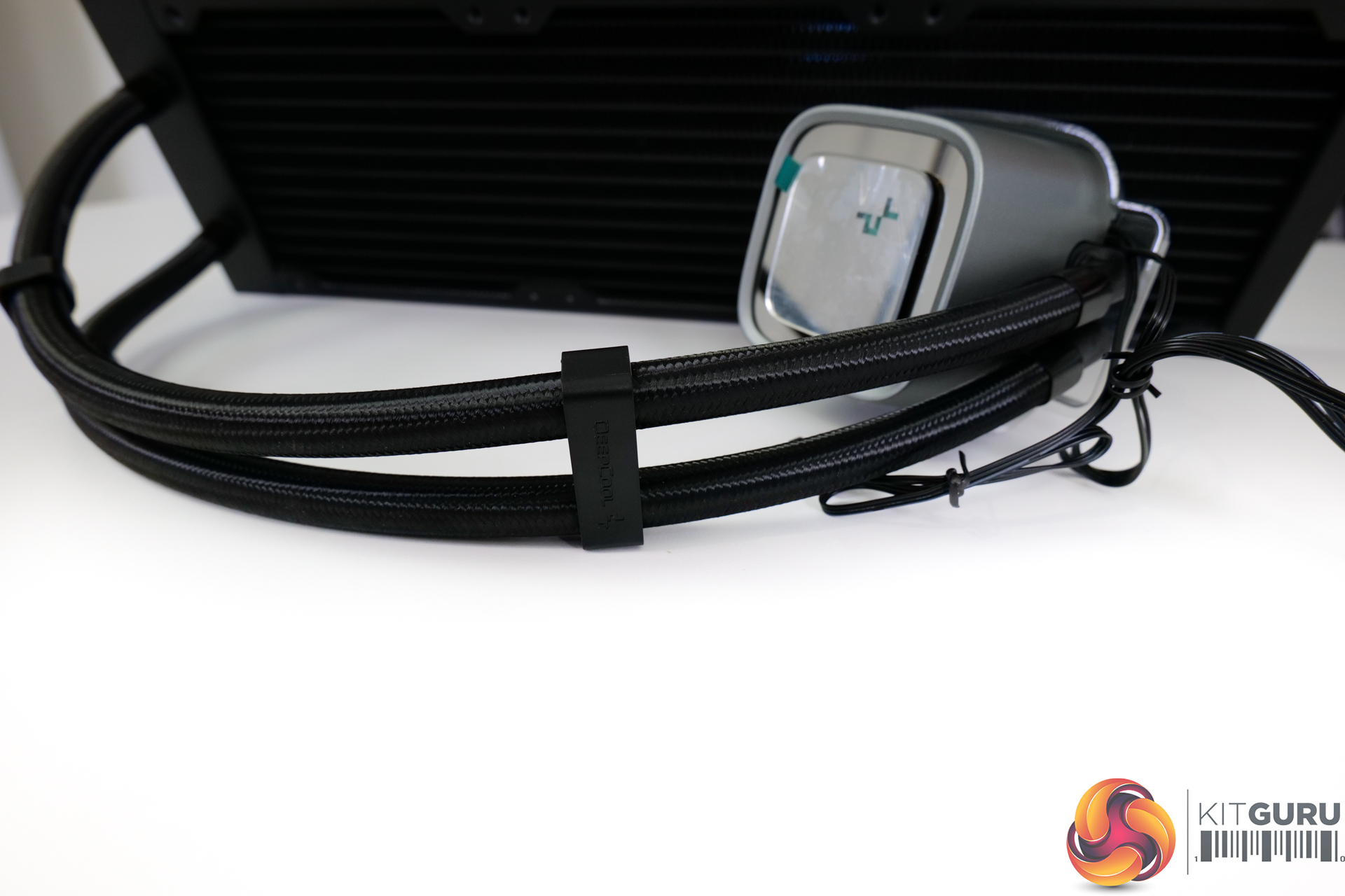 Two plastic cable guides are pre-mounted on the reasonably thick tubing. This is a nice quality touch by DeepCool.