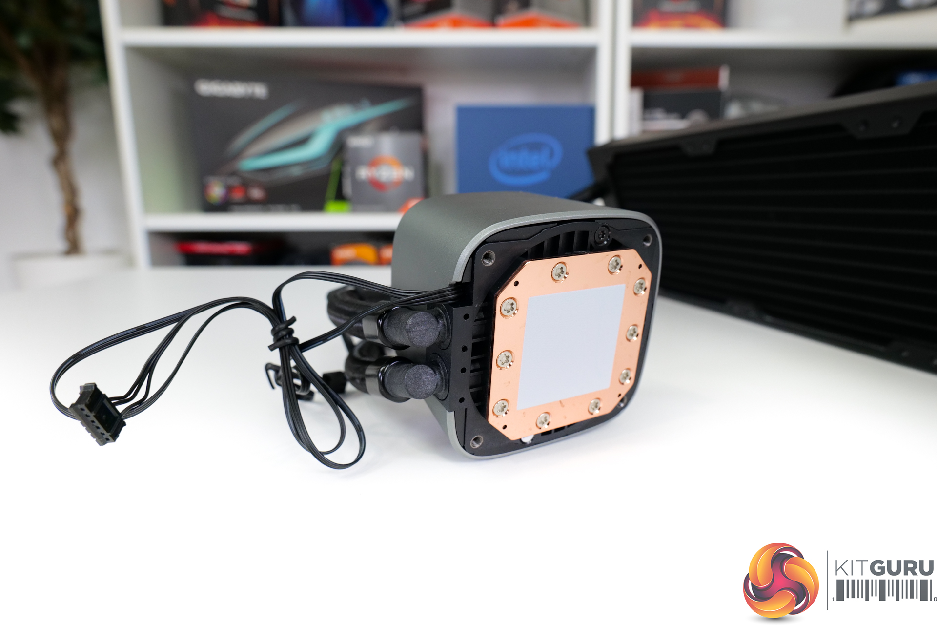 The 4th Gen Pump is 3-pin 12V DC-powered by a 3-phase motor. It runs at a lofty speed rating of 3100 RPM but it is disappointing to see a less controllable DC – rather than PWM – pump on a premium cooler such as this.