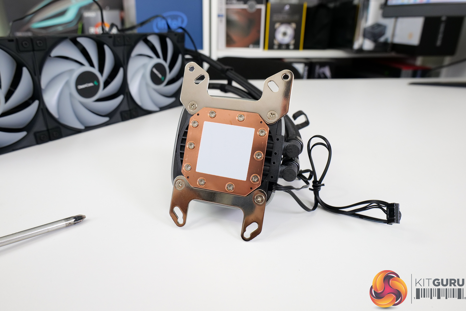 You first screw the appropriate brackets onto the bottom of the pump-block unit. But DeepCool doesn’t make is hugely clear that each bracket has a very specific position with respect to the tubing.