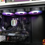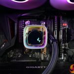 RGB lighting for the cooler’s fans and Infinity Mirror pump-block unit is absolutely superb. The lighting is bright, the colours are clear, and granularity is very smooth. I like the lighting on this cooler very much.