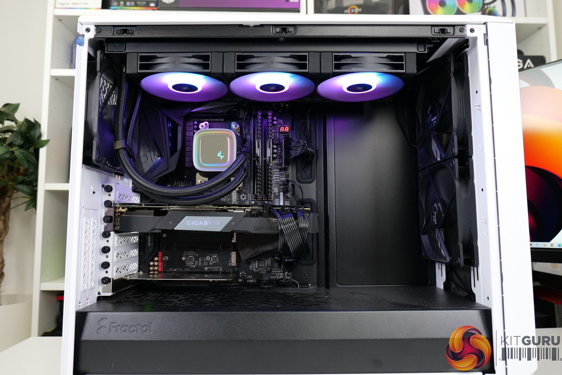 Then the radiator and fans can be installed, the cables connected, and the DeepCool logo inside the infinity mirror display rotated as desired. I would recommend installing the fans on the radiator whilst it is still outside the chassis because the small proprietary cables and connectors are difficult to deal with otherwise.