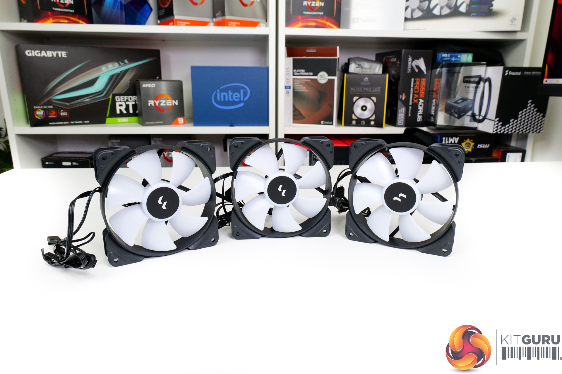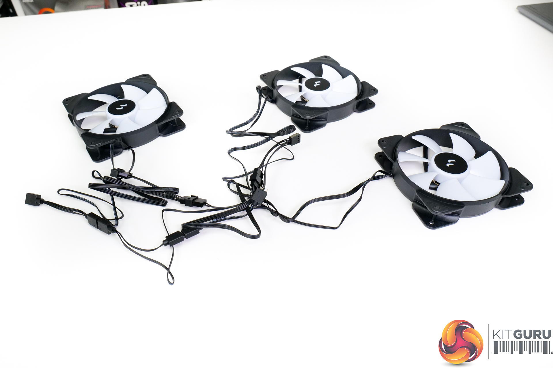 These seven-blade, rifle bearing blowers utilise a semi-opaque white colouring alongside six hub-mounted RGB LEDs to create their ARGB lighting appearance. Their rated MTTF is 90,000 hours.