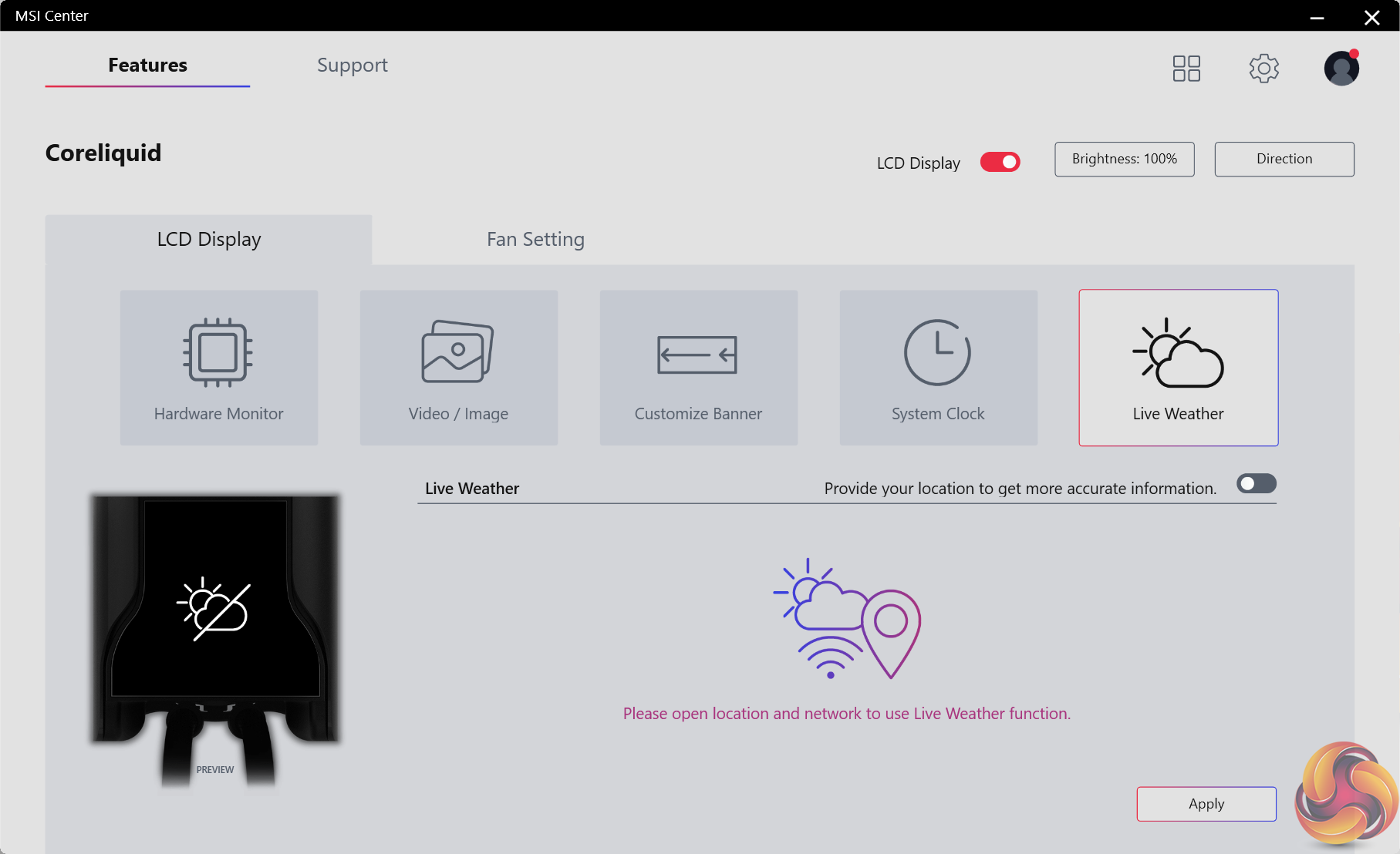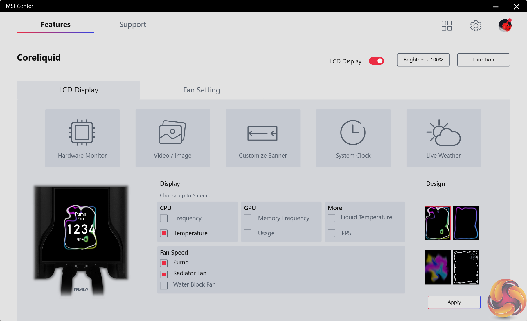 Interestingly, MSI rates the fans and pump life expectancy as 50,000 hours each, which is very low by modern PC cooling hardware standards. As such, you will have to take care as to which e-tailer you purchase this cooler from, and how much warranty support and coverage they offer.