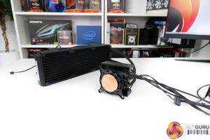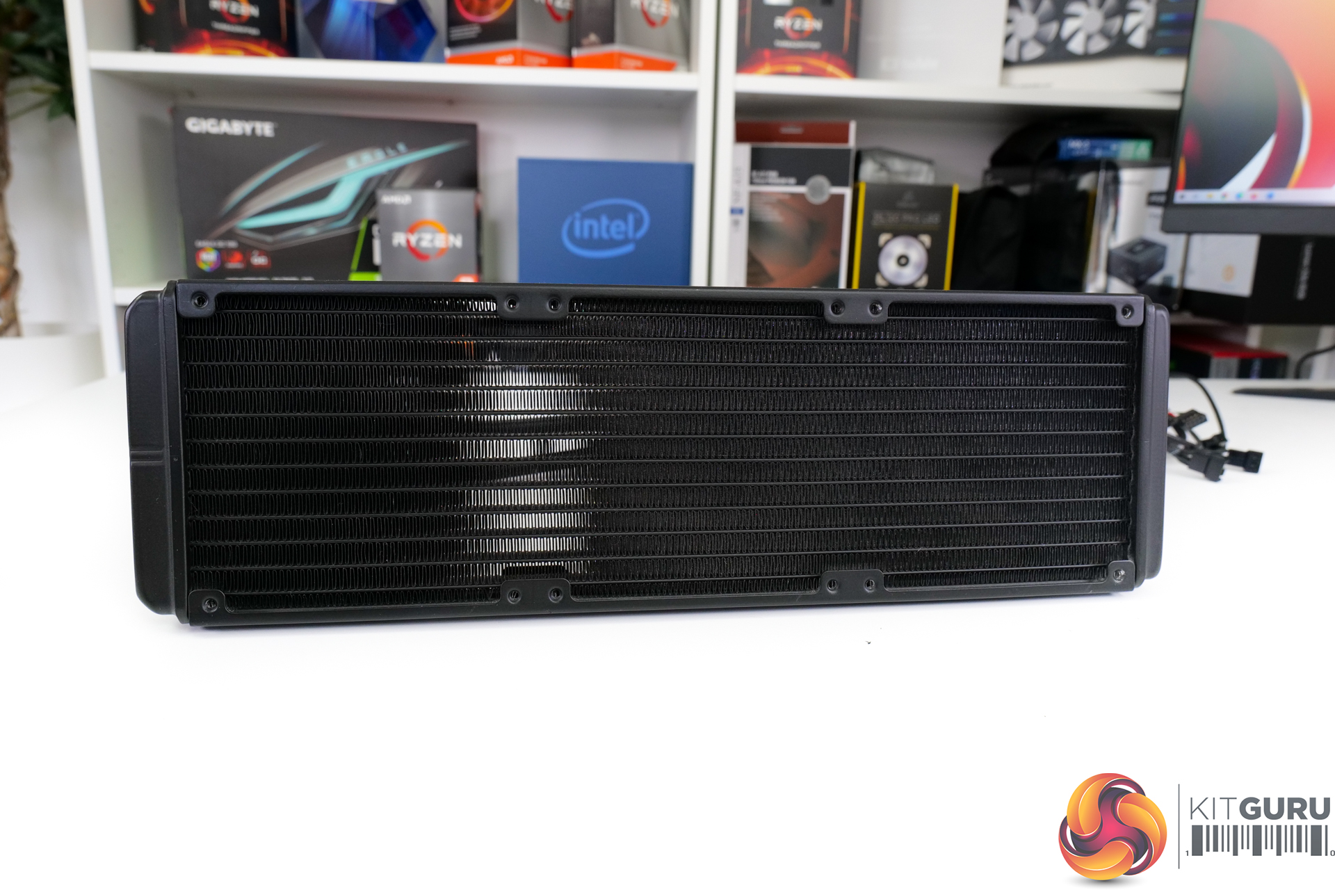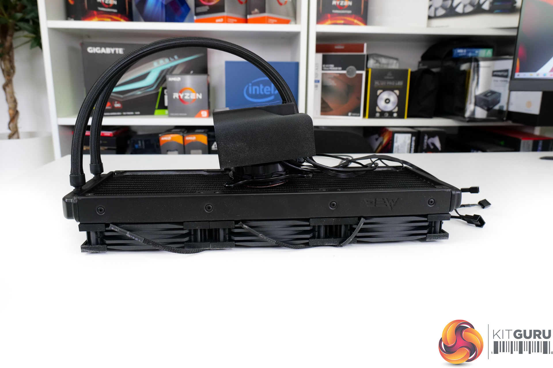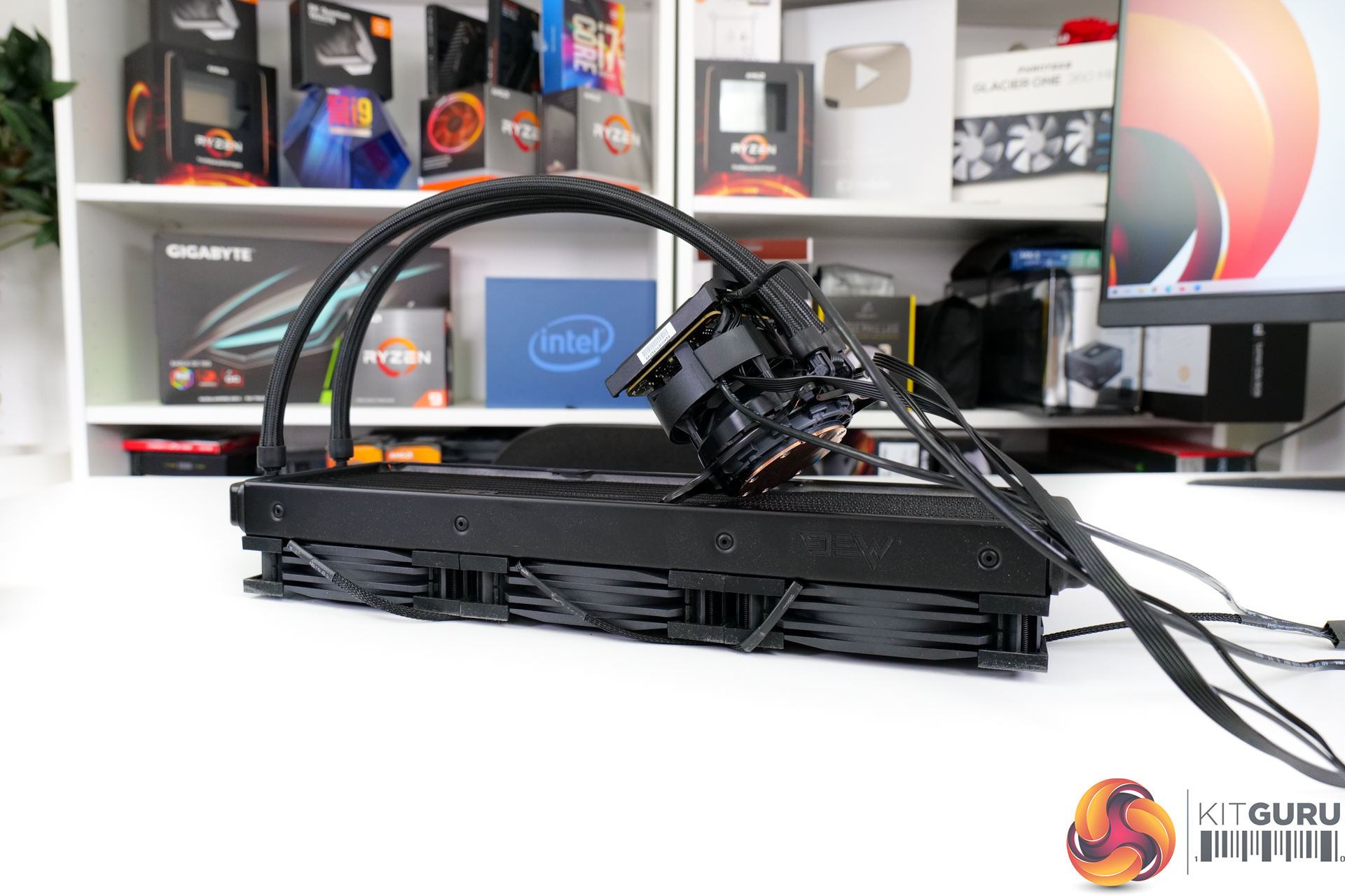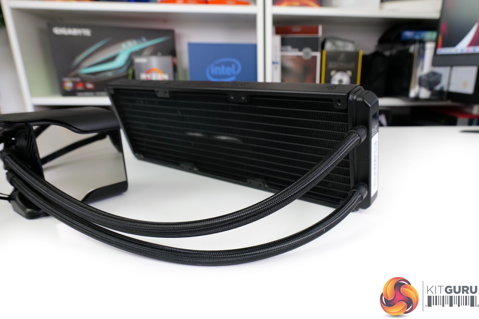 Physically, the pump-block unit is not all that big given that it is an Asetek system. However, the unit is huge in practise thanks to the inclusion of a 60mm 4000 RPM waterblock fan positioned directly above. Oh, and there’s the 2.4” display mounted on top of that.