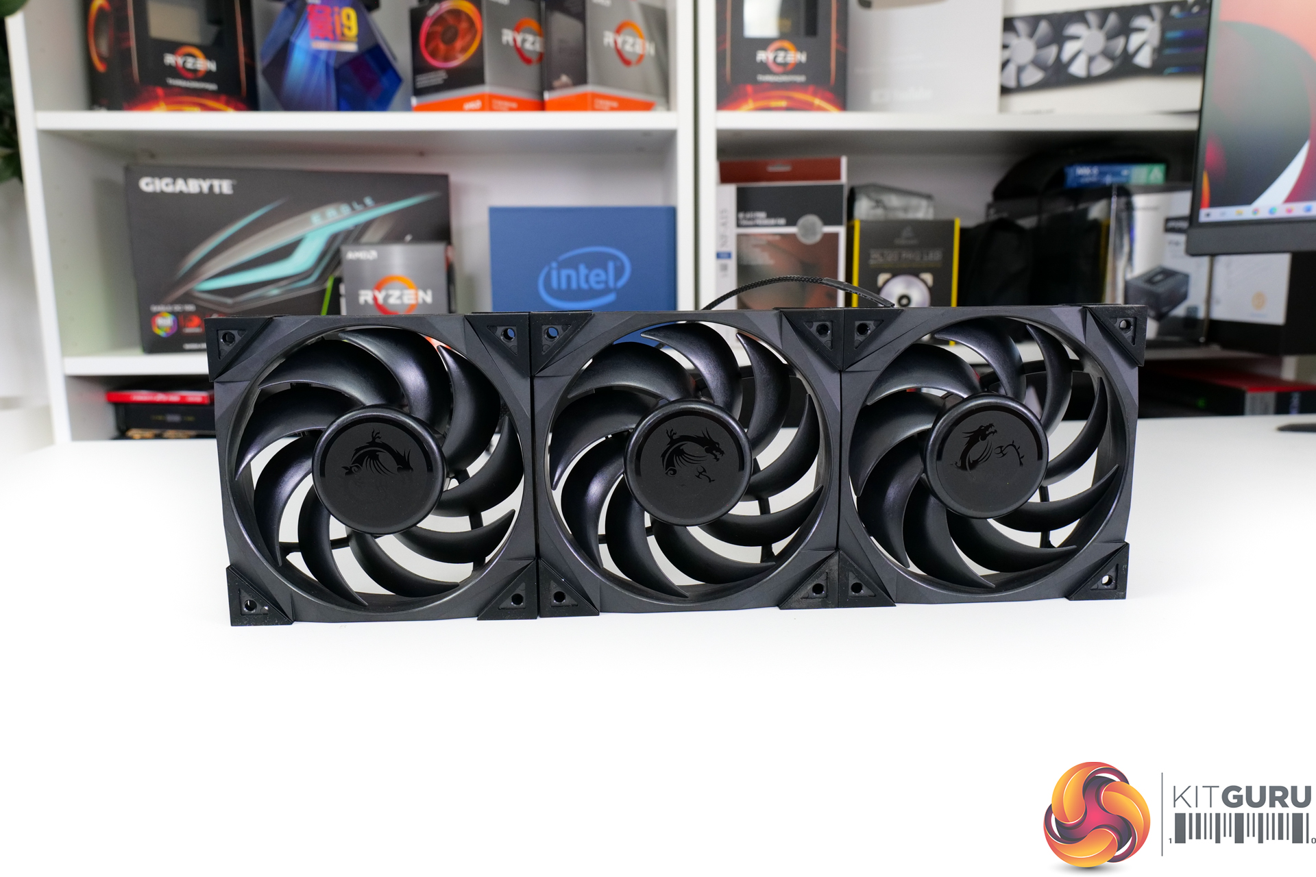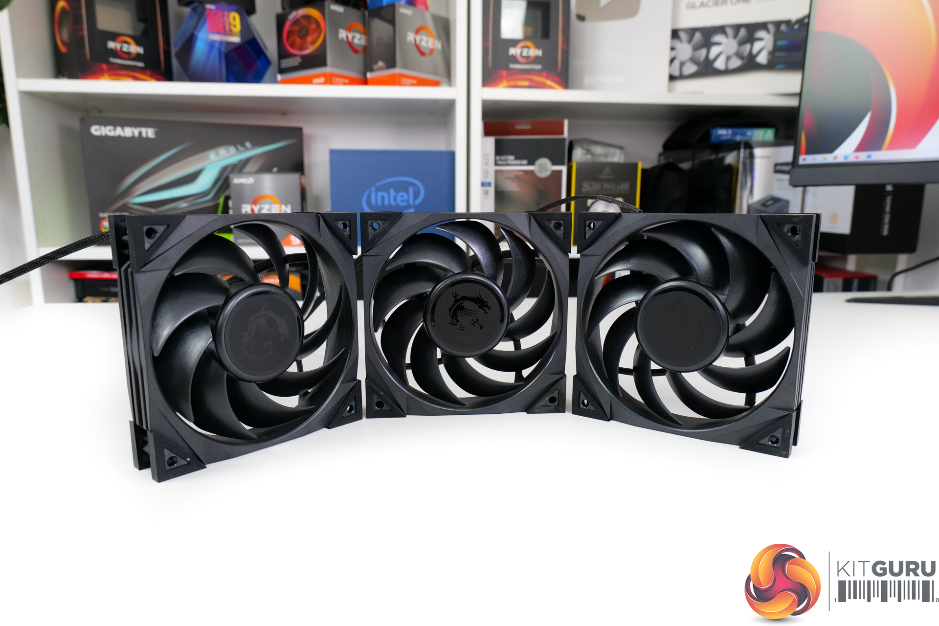 MSI does include rubber noise-isolating dampers on each corner of the fans, though, which is good to see.