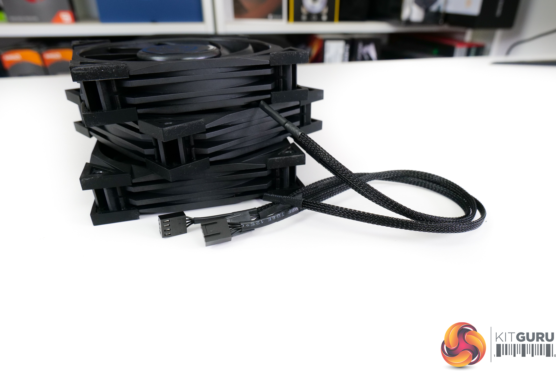 They use a 350mm-long, braided 4-pin PWM cable for connection and can operate under a zero-RPM mode. There is no fancy RGB LED lighting on the fans, which is odd given the already superfluous nature of an AIO with an LCD screen.